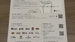 株主優待 フジオフードグループ本社(2752)の株主優待の案内の到着!【2025年6月】 2025年9月1日に、フジオフードグループ本社から株主優待の案内が届きましたので、株主優待の内容を紹介します。 フジオフードグループ本社は、大阪地盤に大衆セルフ食堂「まいどおおきに食堂」や串揚げ食べ放題「串家物語」等を全国展開している企業で... 2025.09.04 株主優待06月権利