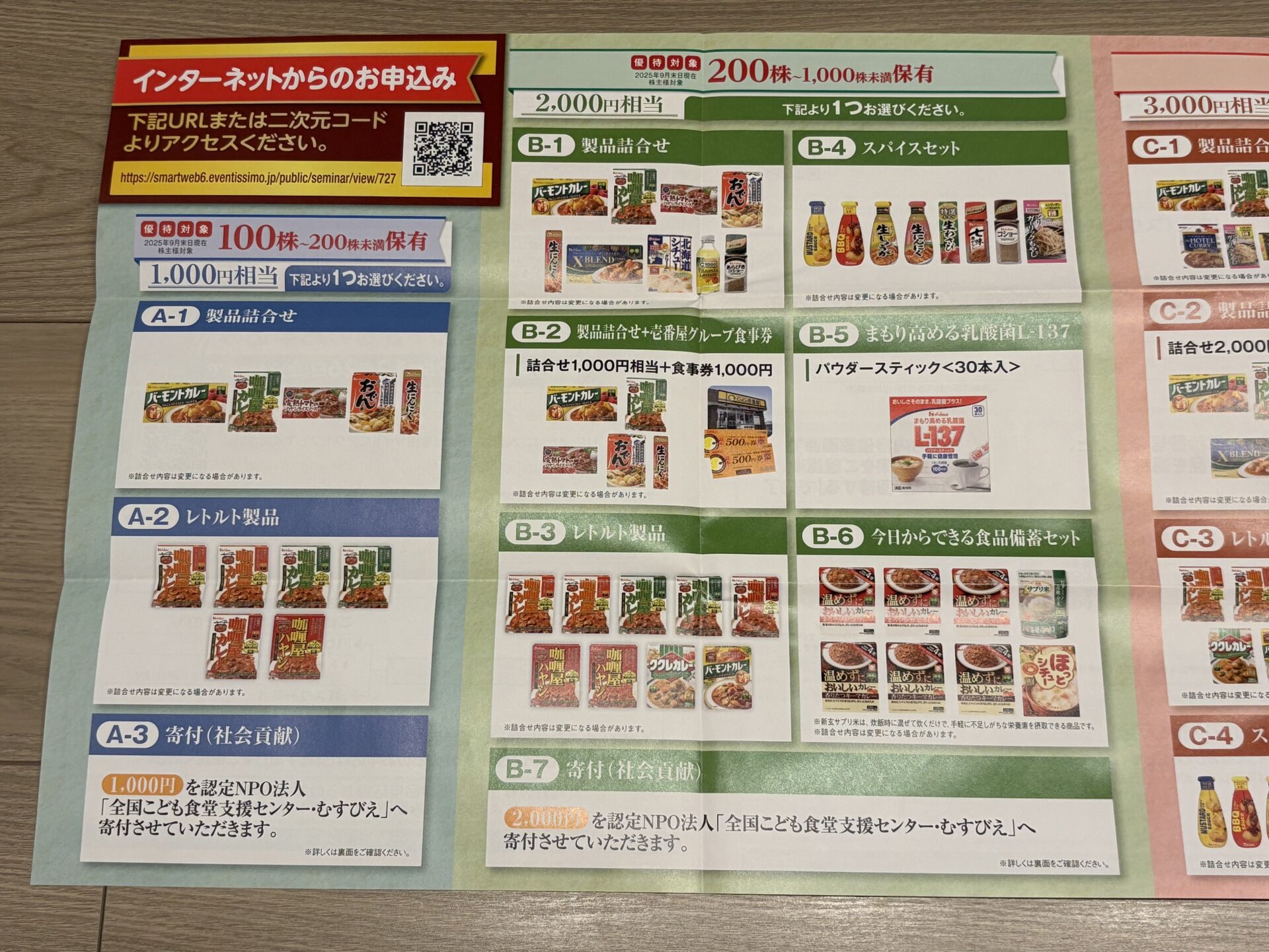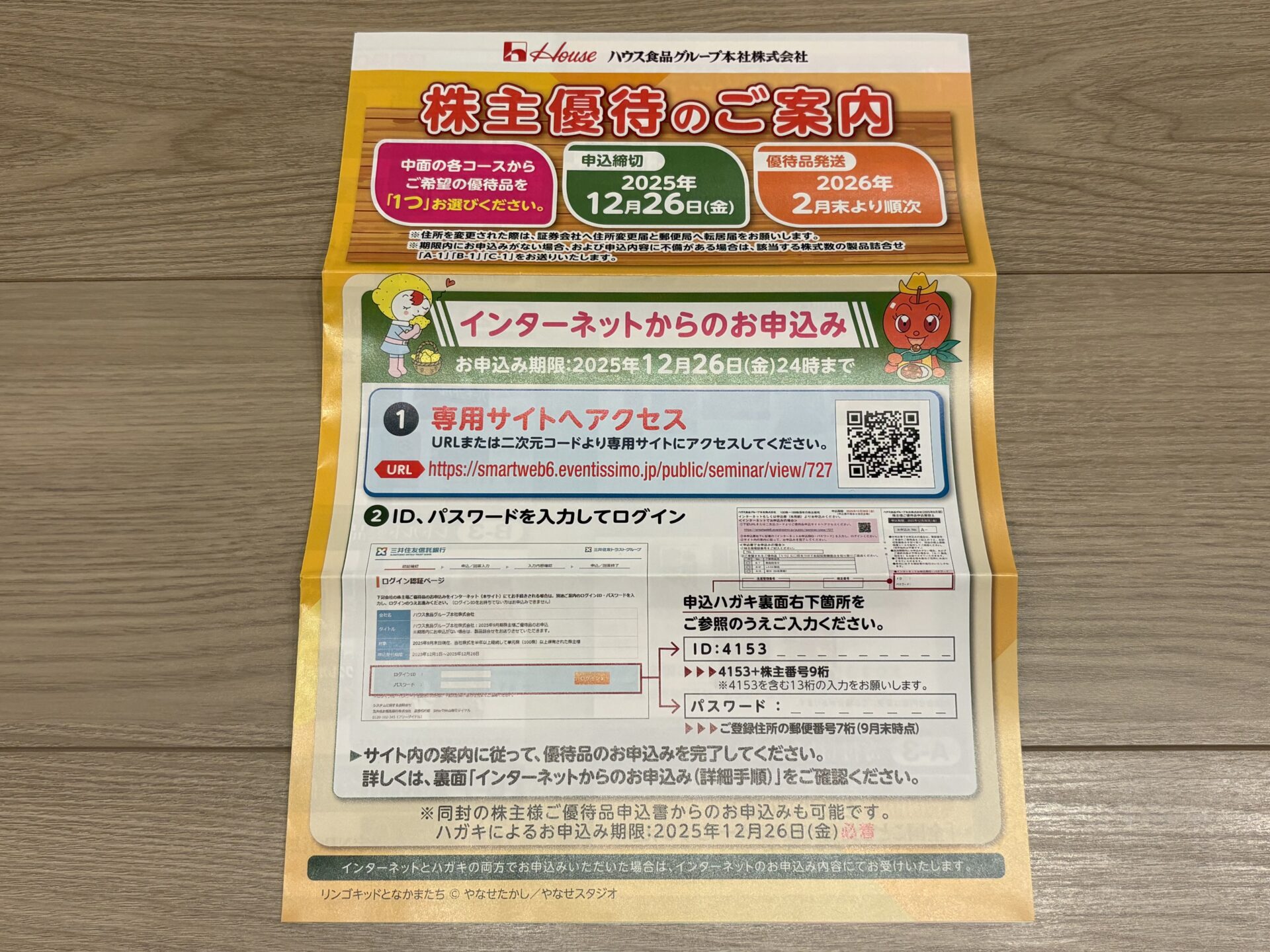2025年12月3日に、ハウス食品グループ本社から株主優待の案内が届きましたので、株主優待の内容を紹介します。