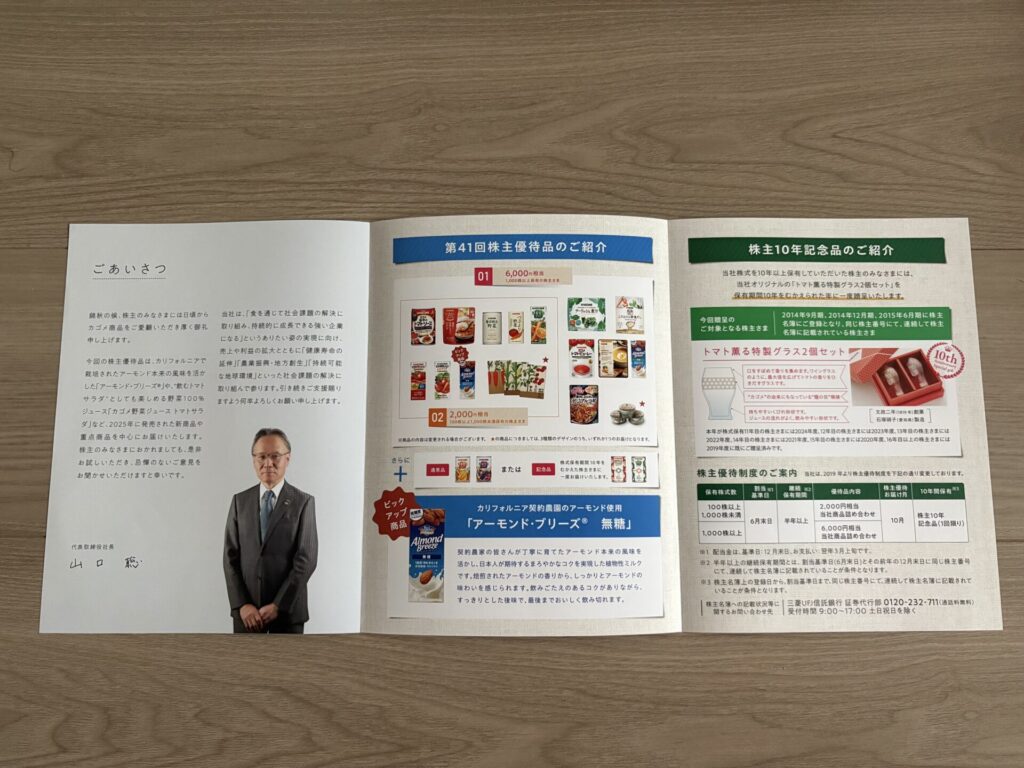2025年10月16日に、カゴメから株主優待が届きましたので、株主優待の内容を紹介します。