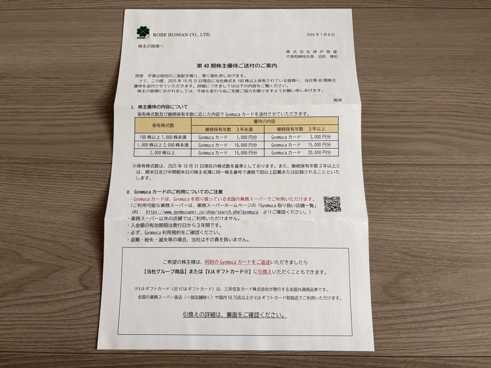 神戸物産(3038)の株主優待の到着!【2025年10月】