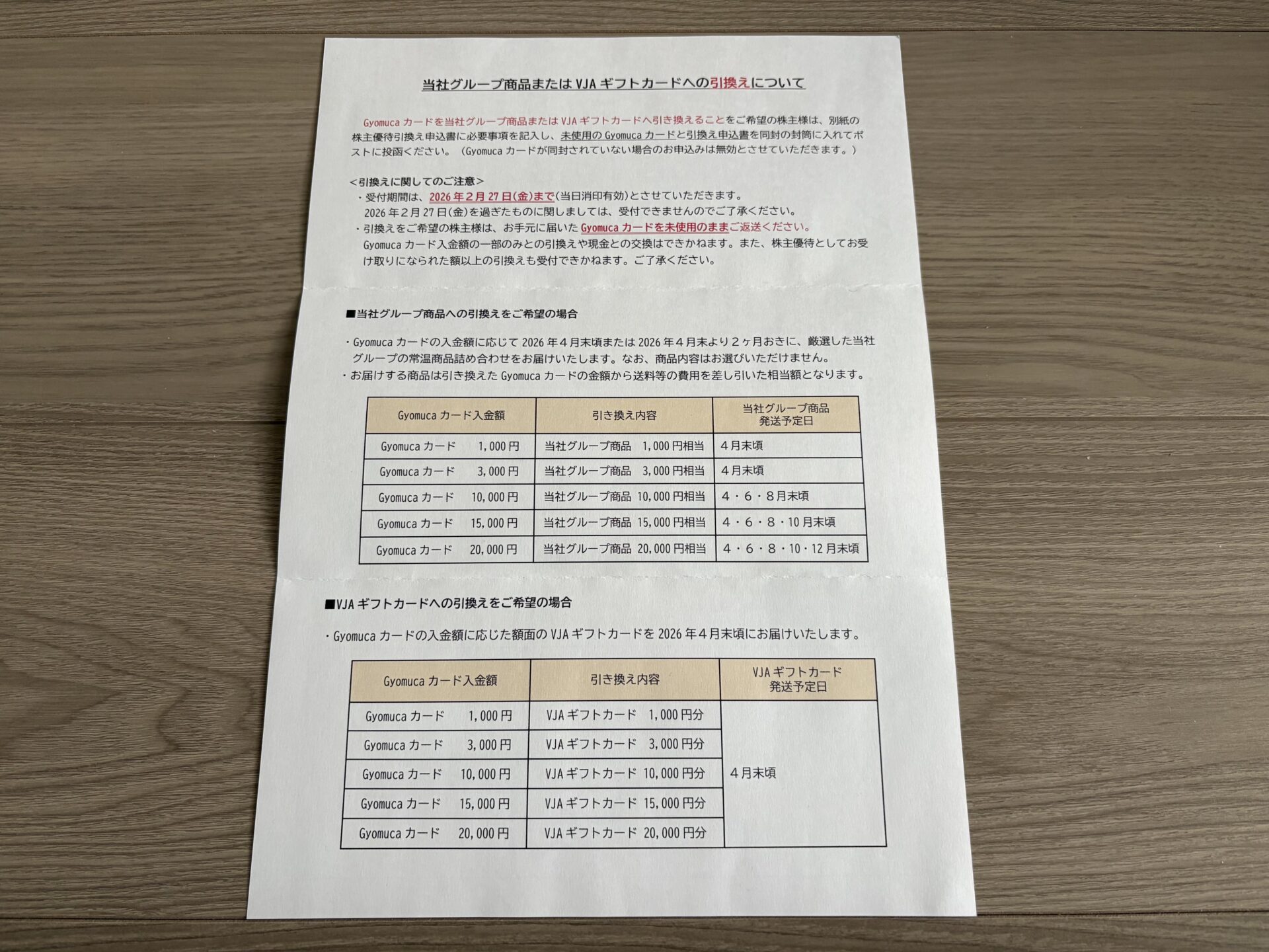 2024年10月期まではJCBギフトカードでしたが、株主優待制度の変更があり、2025年10月期よりGyomucaカードとなりました。