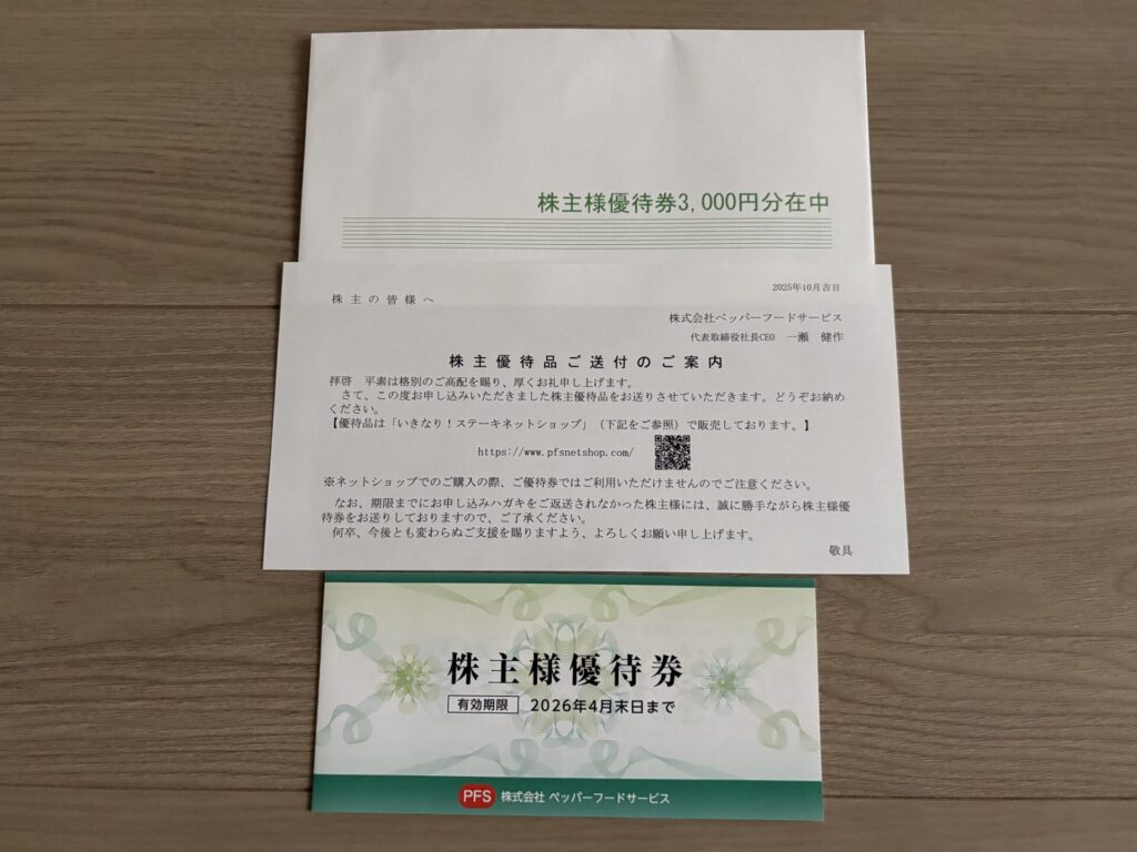 2025年10月22日に、ペッパーフードサービスから株主優待の案内が届きましたので、株主優待の内容を紹介します。