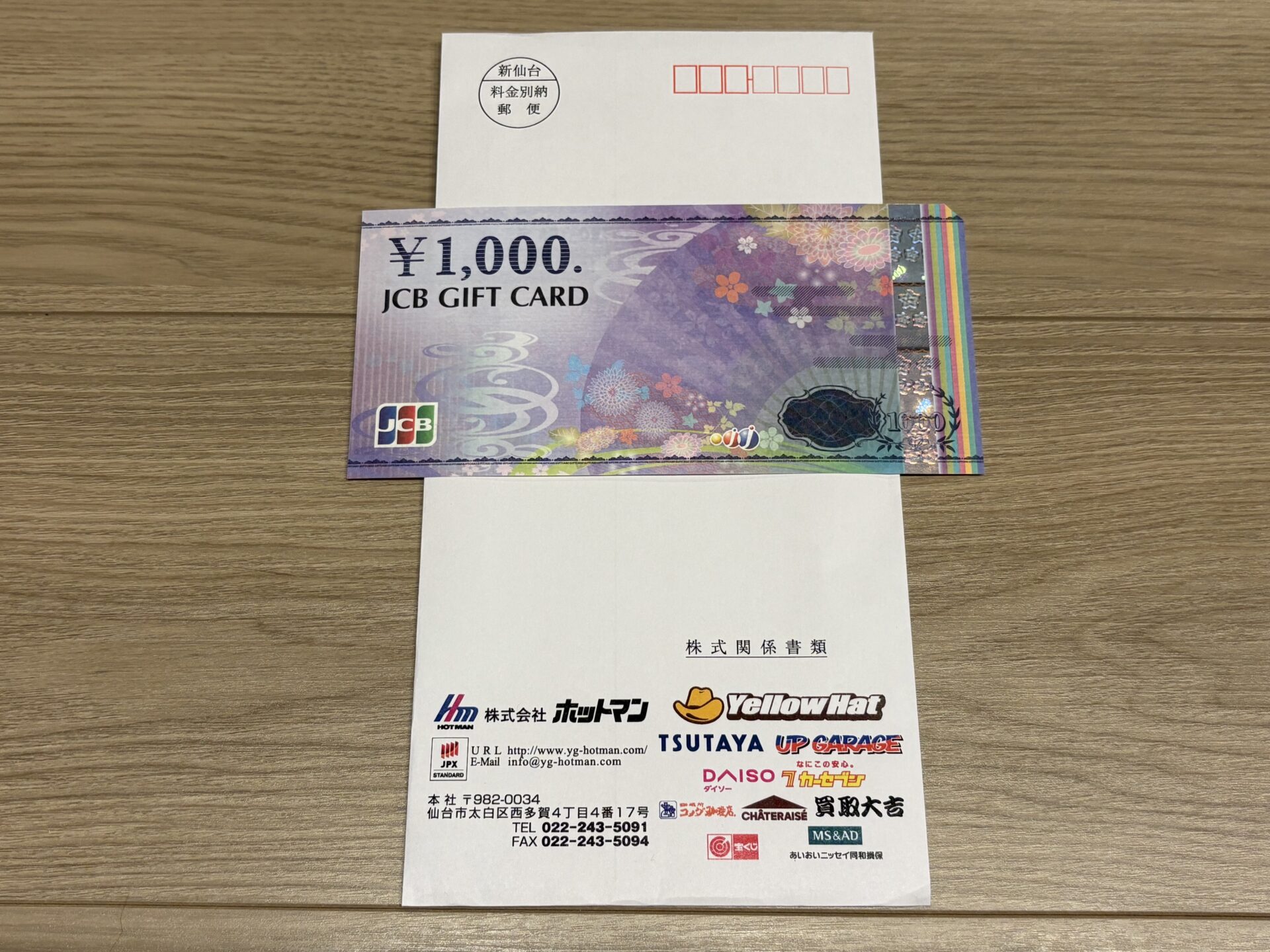 9月の権利確定で100株を1年以上継続保有していたので、1,000円相当のJCBギフトカードを頂きました!