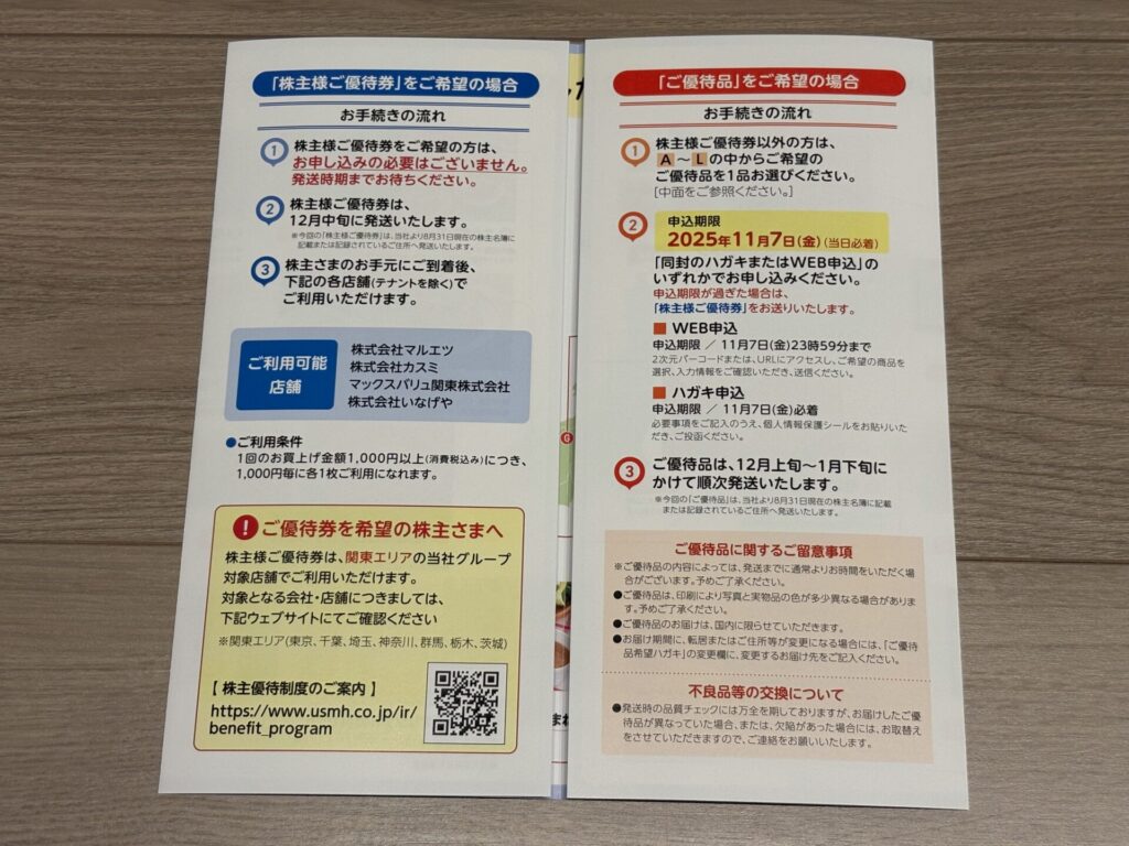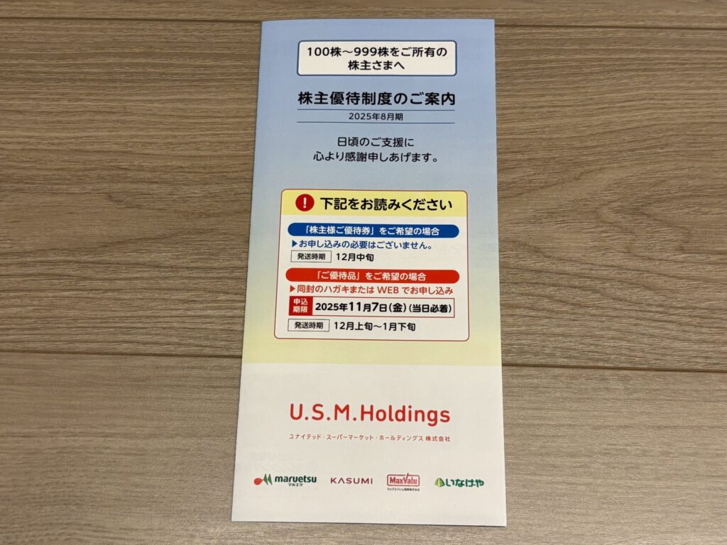 2025年10月21日に、ユナイテッド・スーパーマーケット・ホールディングスから株主優待の案内が届きましたので、株主優待の内容を紹介します。