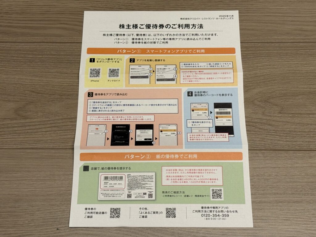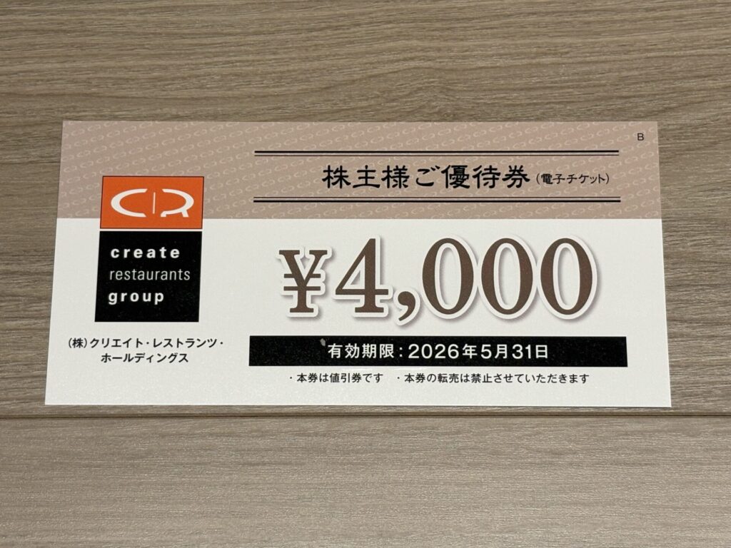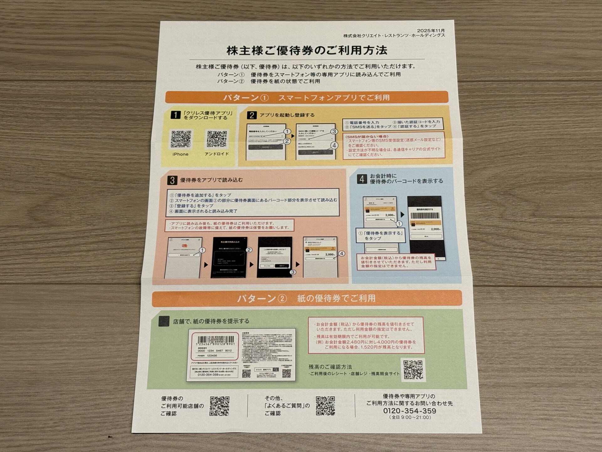2025年11月14日にクリエイト・レストランツ・ホールディングスから株主優待が届きましたので、株主優待の内容を紹介します。