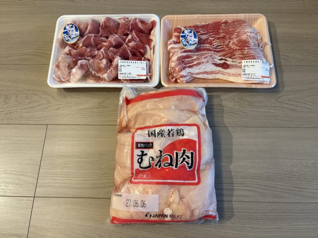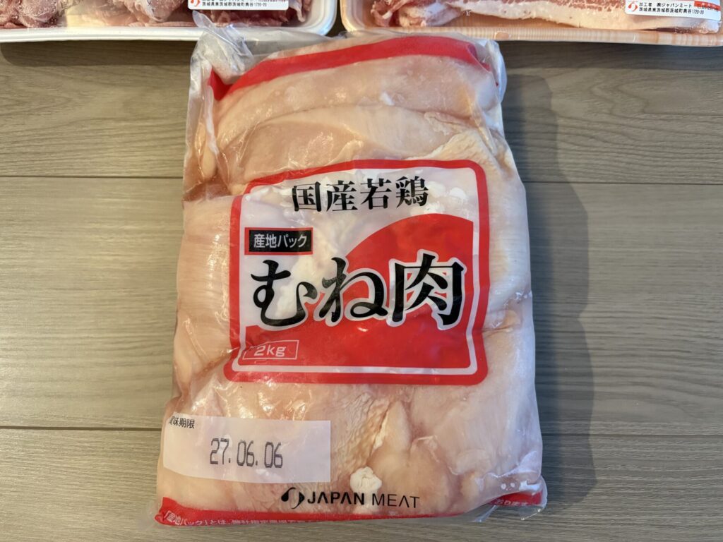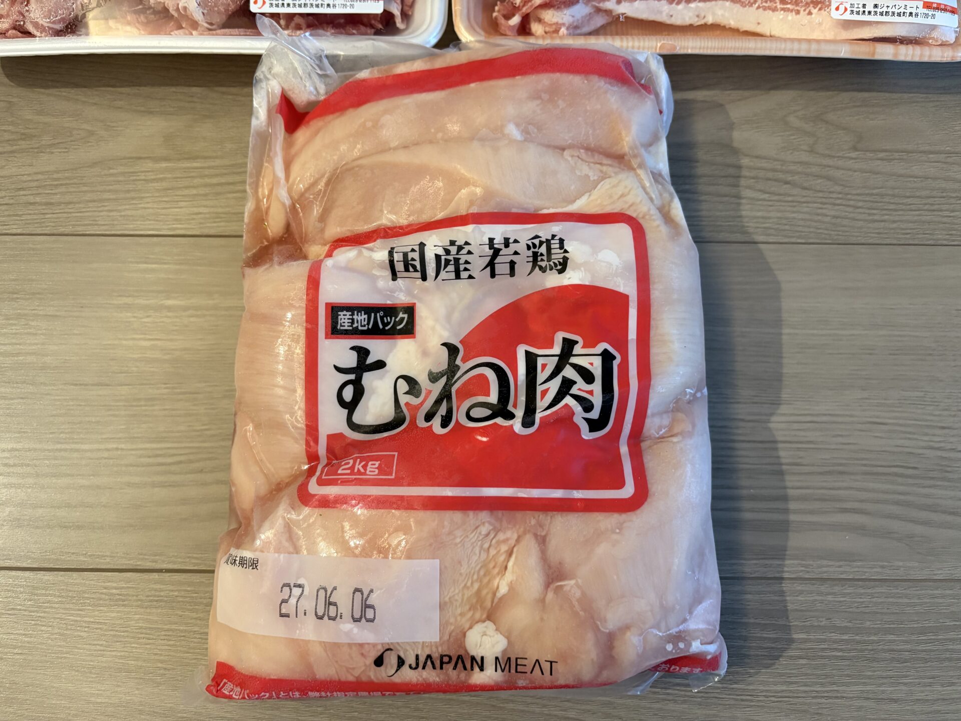 国産鶏ムネ肉は2kgとボリューム感があり、冷凍庫の空きスペースを事前に確認し、スペースを確保しておいた方が良いと思います。