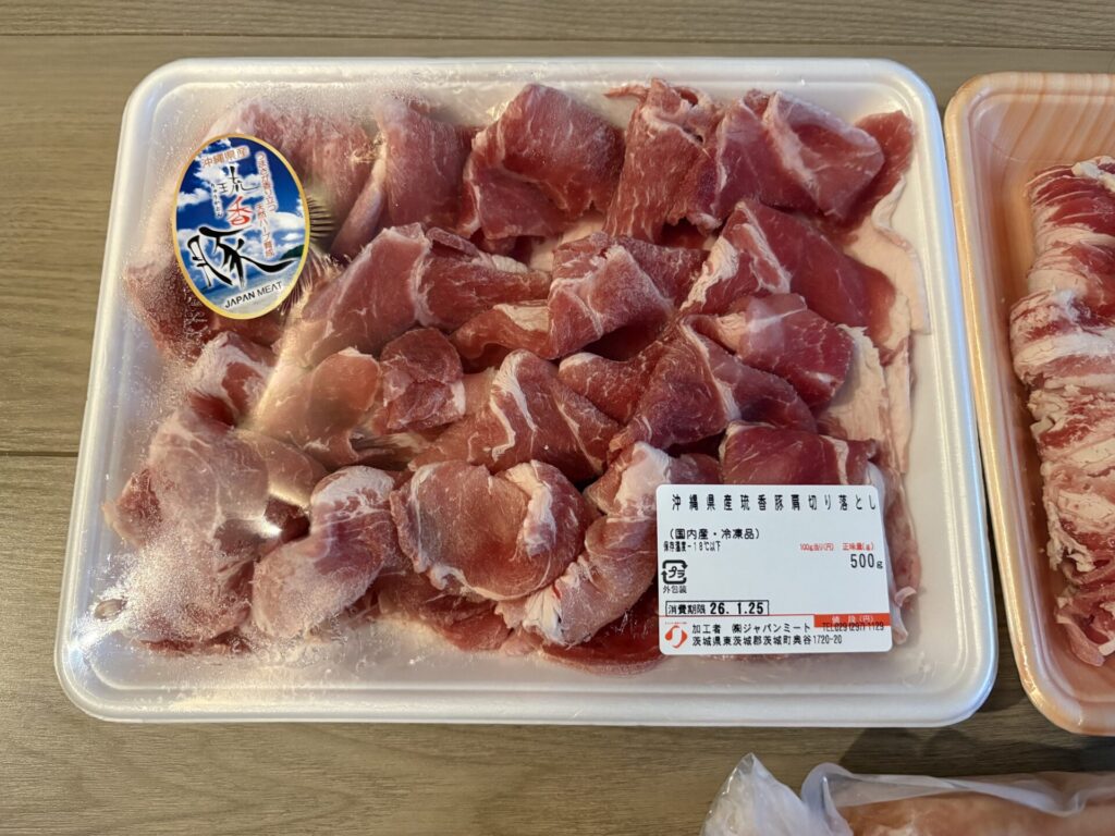 沖縄琉香豚のバラ肉薄切と切落しは、各々500gとなっています。