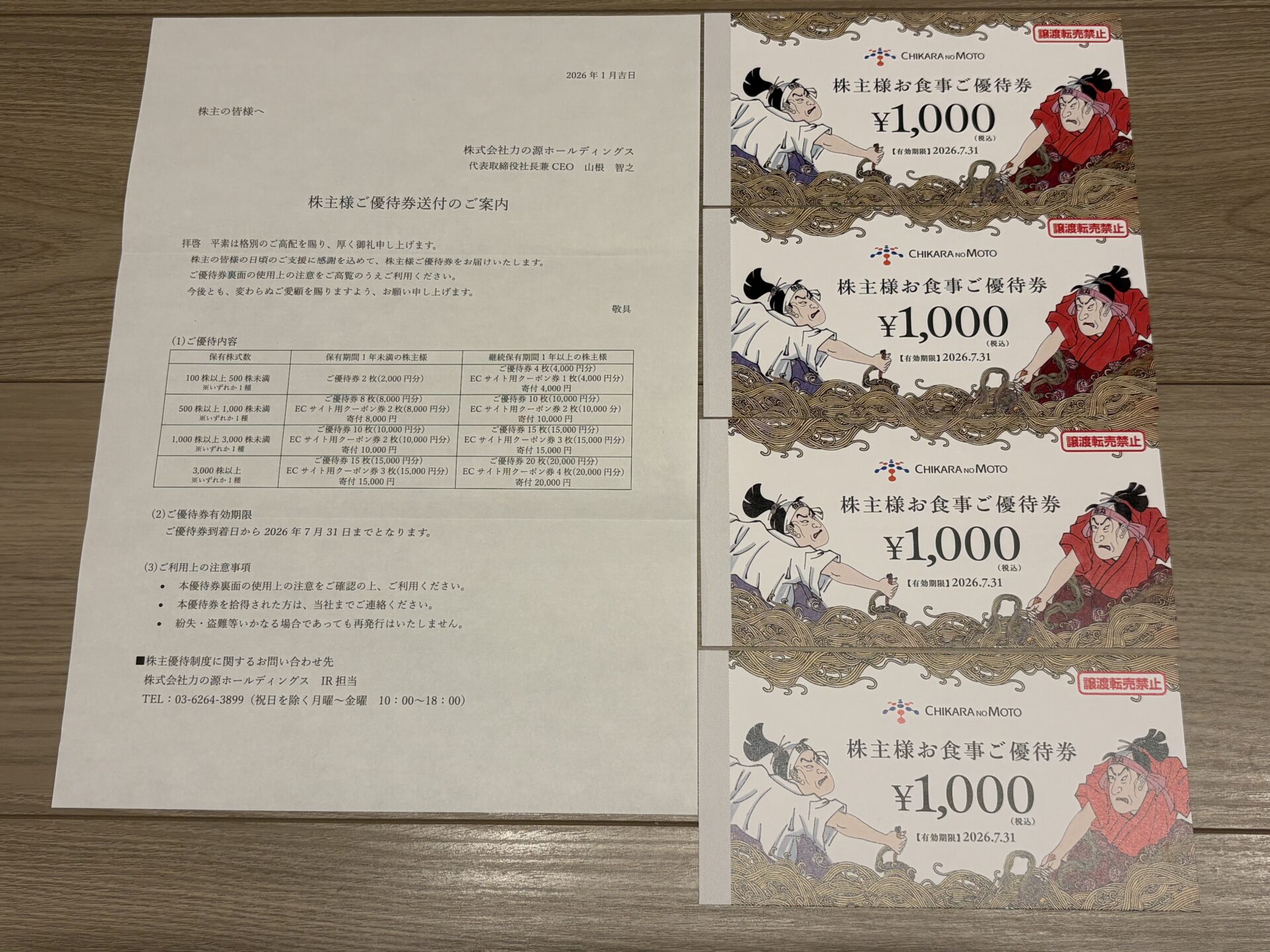 2026年1月29日に、力の源ホールディングスから株主優待が届きましたので、株主優待の内容を紹介します。