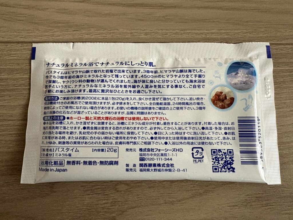 バスタイムは2個で、ヒマラヤ山脈で採れた岩塩で出来ているというものです。