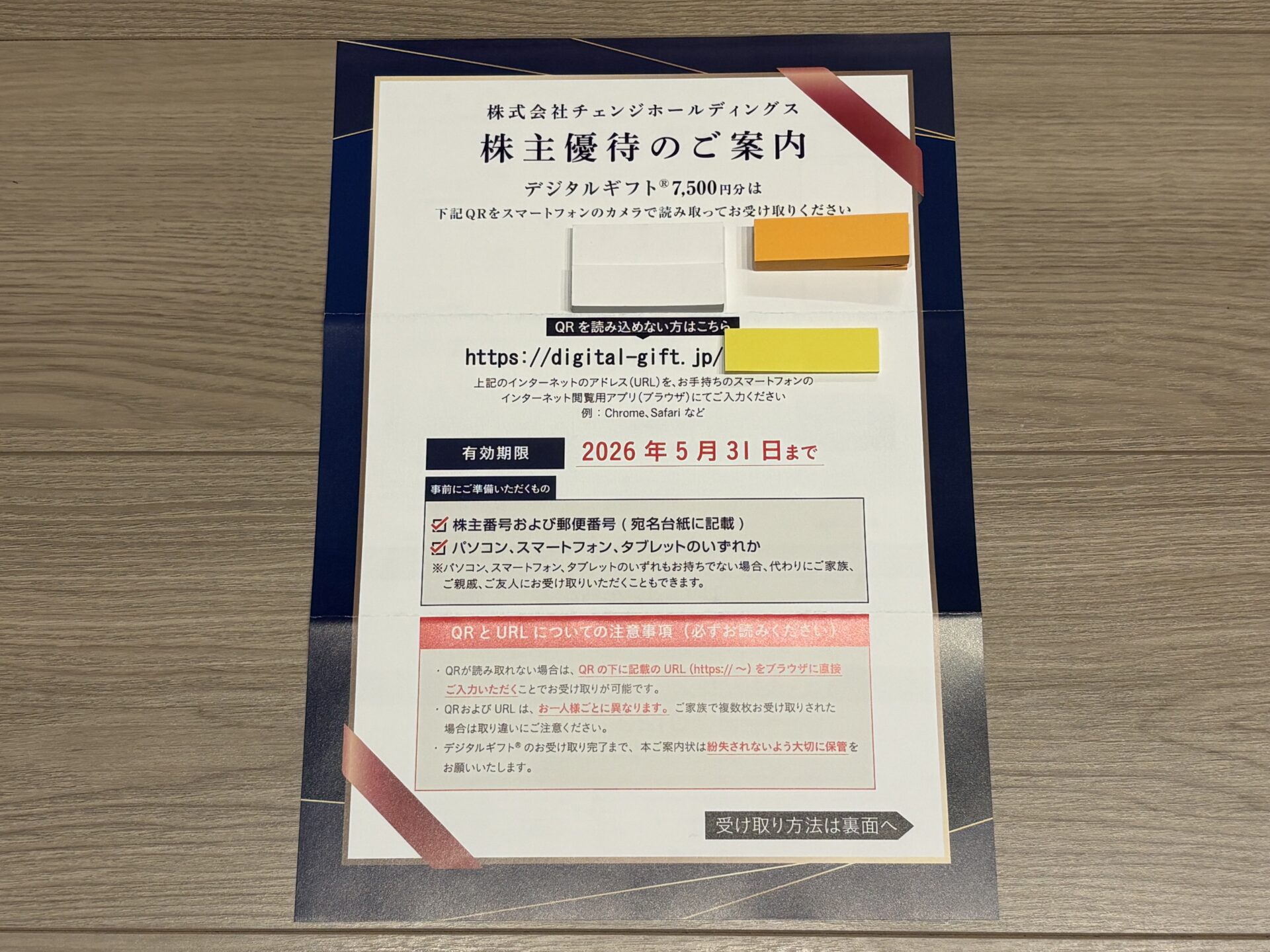 2026年3月12日に、チェンジホールディングスから株主優待が届きましたので、株主優待の内容を紹介します。