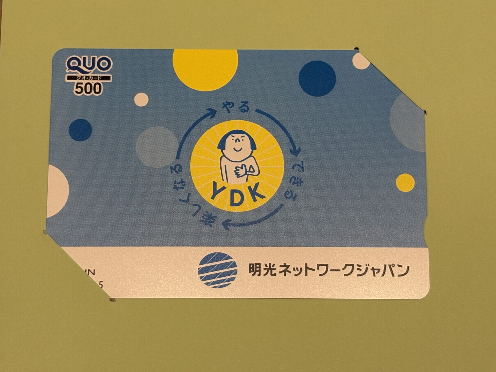 社名入りのクオカードとなっており、Purposeの「「やればできる」の記憶をつくる」が元になっている図柄になっています。