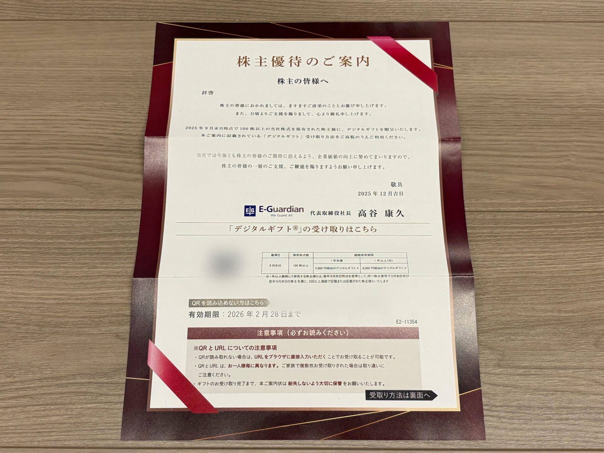 2025年12月19日に、イー・ガーディアンから株主優待が届きましたので、株主優待の内容を紹介します。