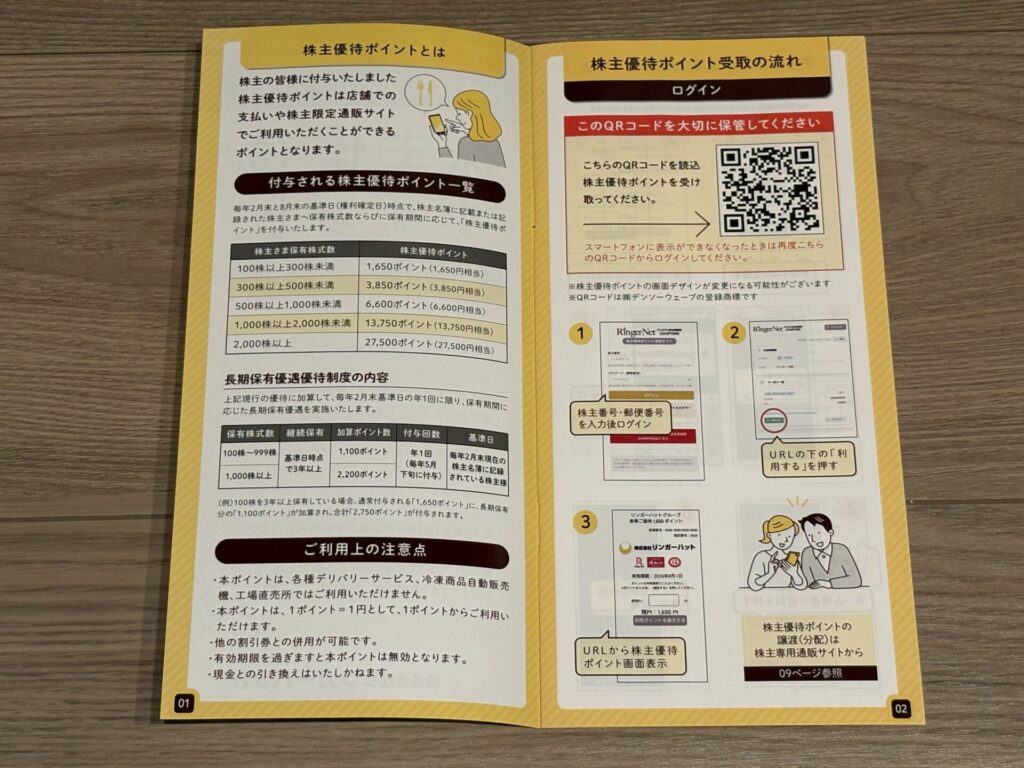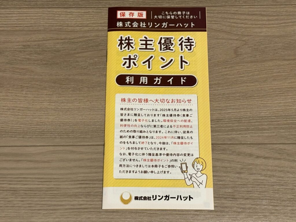 2025年11月13日にリンガーハットから株主優待が届きましたので、株主優待の内容を紹介します。