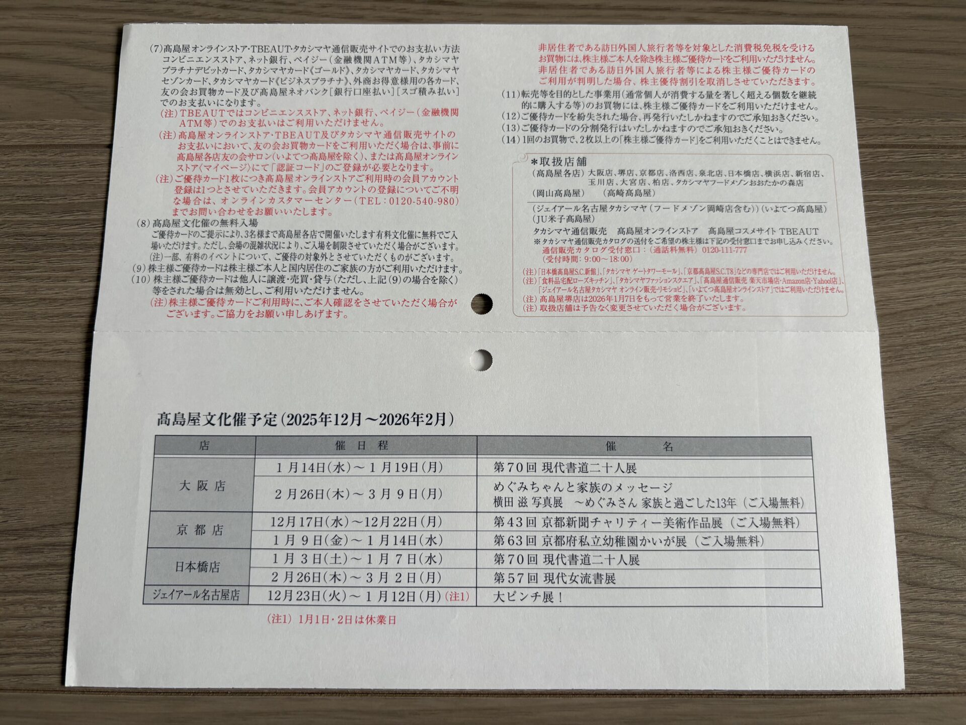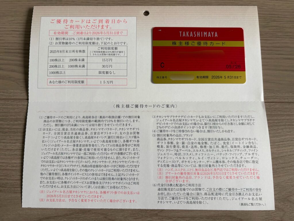 2025年11月26日に、高島屋から株主優待が届きましたので、株主優待の内容を紹介します。