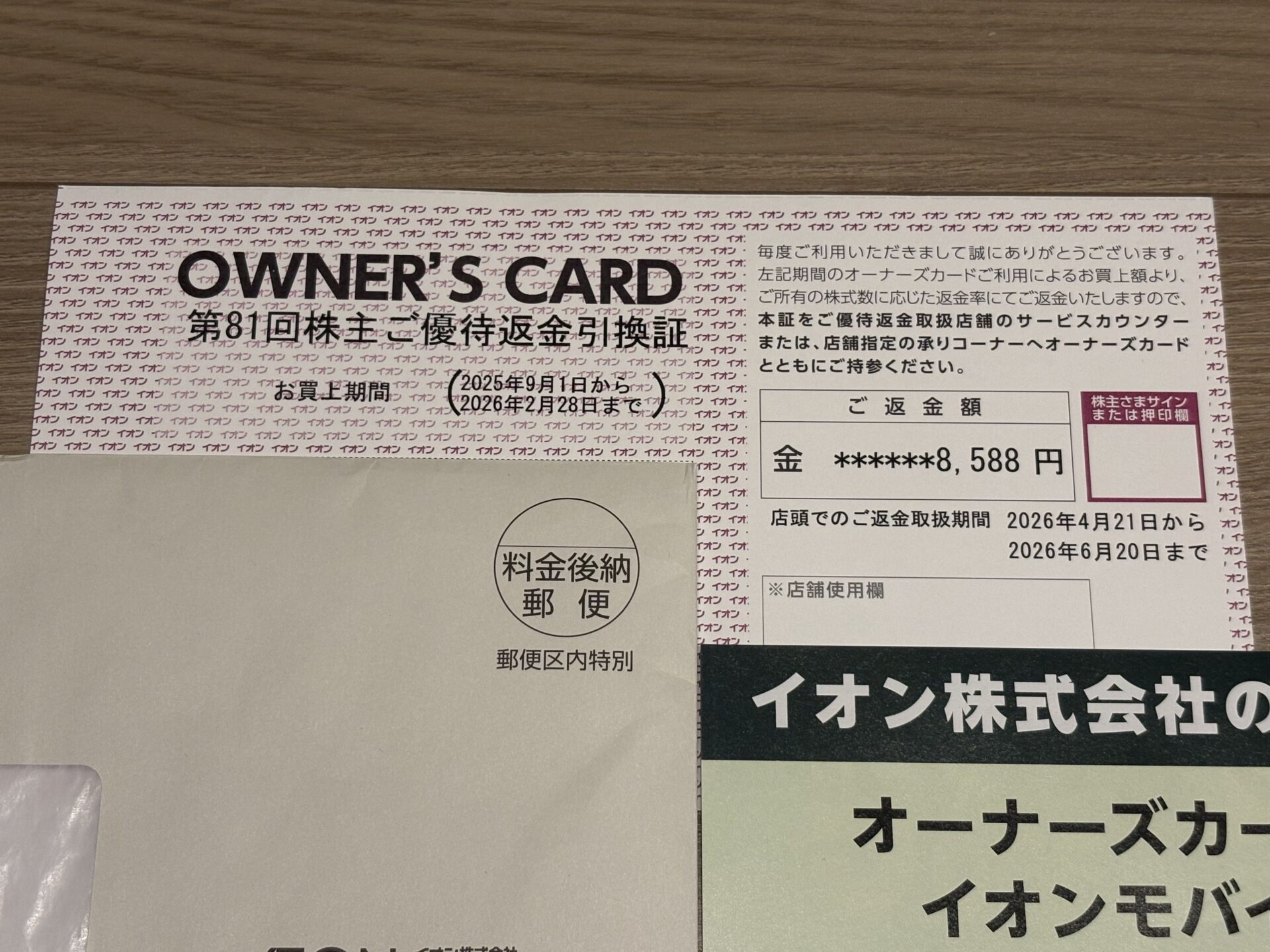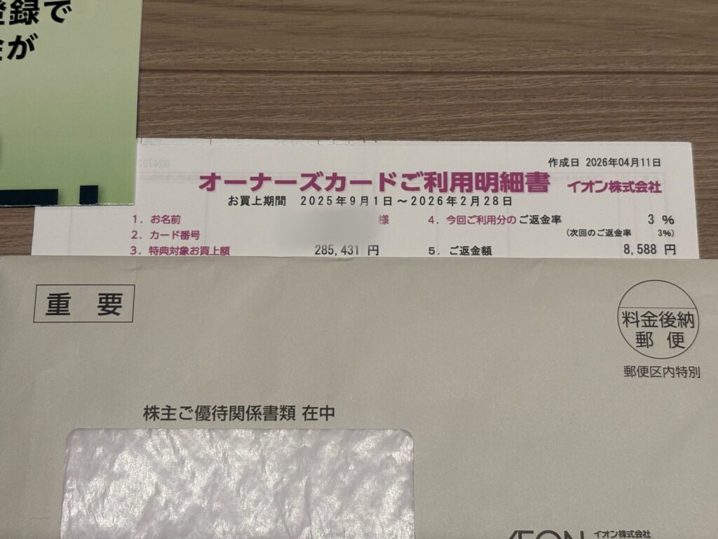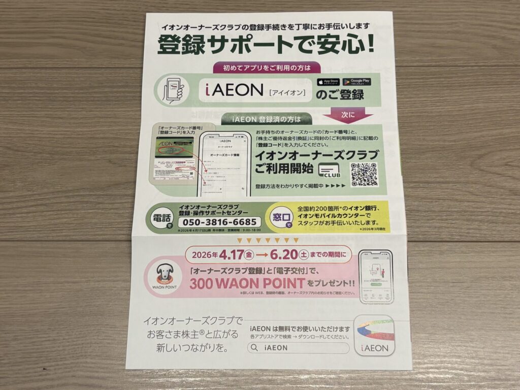 2026年4月17日に、イオンから株主優待が届きましたので、株主優待の内容を紹介します。