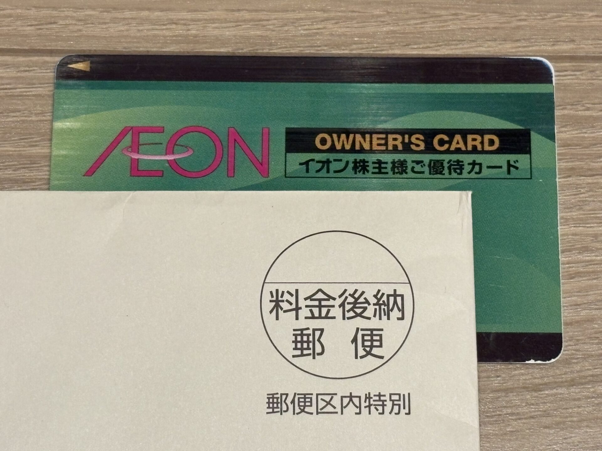オーナーズカードは以下の写真のようなカードで、初めてイオンの株主優待の権利を取得した時に送付されます。