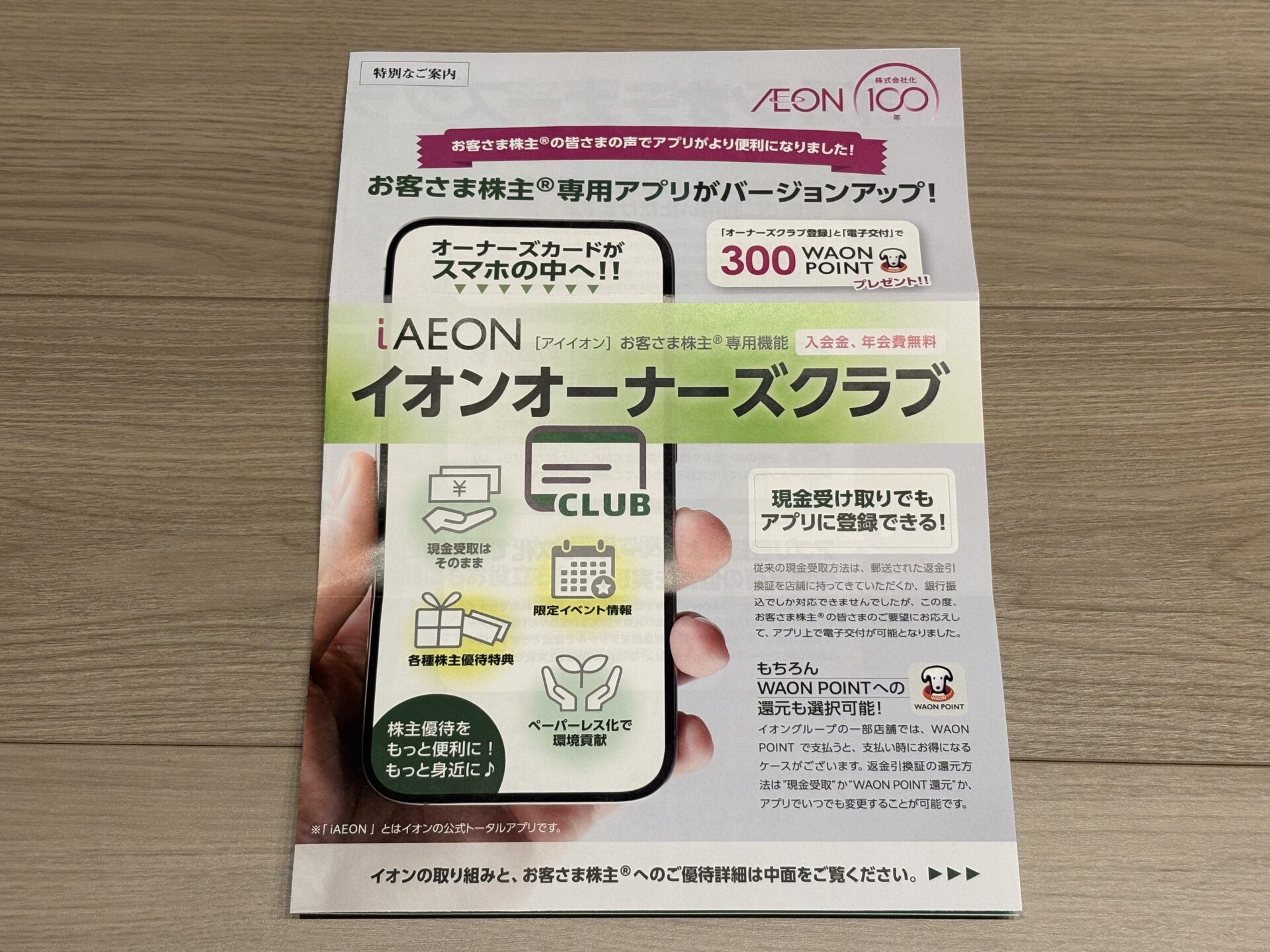 これまではiAEONアプリ内でオーナーズカード登録をすると、優待還元はWAON POINTでの受け取りでした。