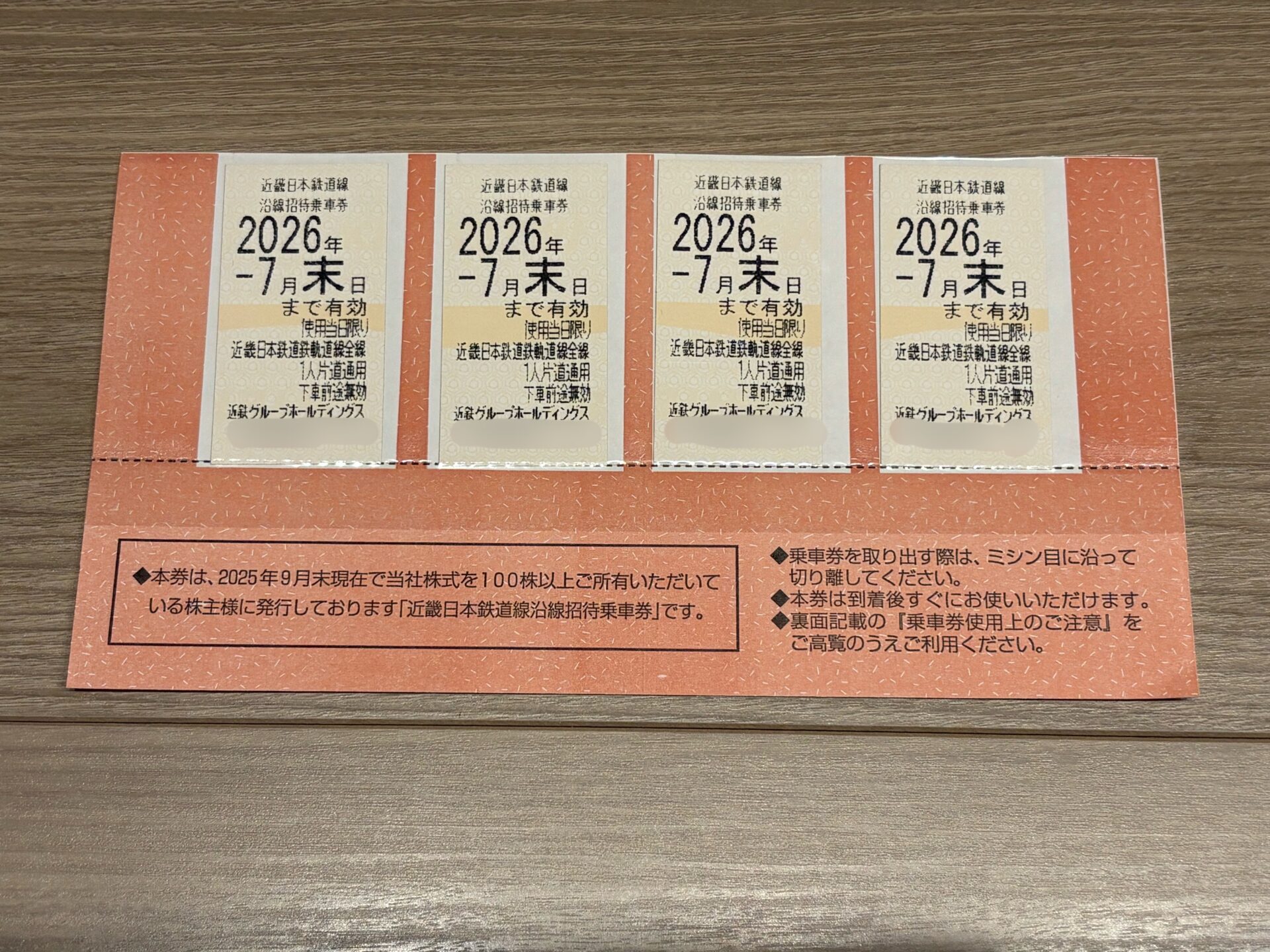 9月の権利確定で100株保有していたので、近畿日本鉄道線沿線招待乗車券4枚と株主様ご優待券を頂きました!