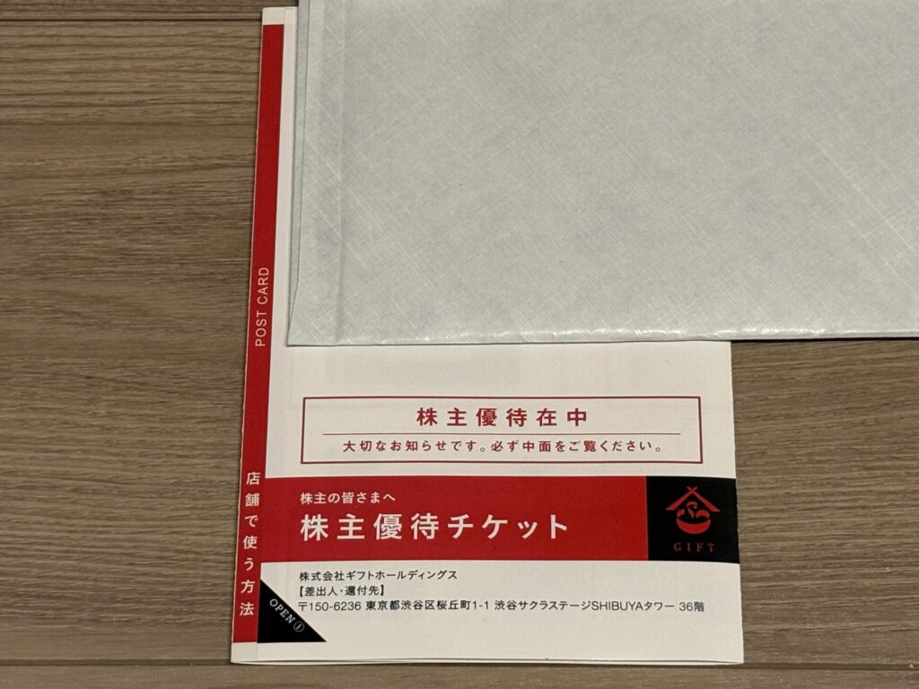 2026年1月26日に、ギフトホールディングスから株主優待が届きましたので、株主優待の内容を紹介します。