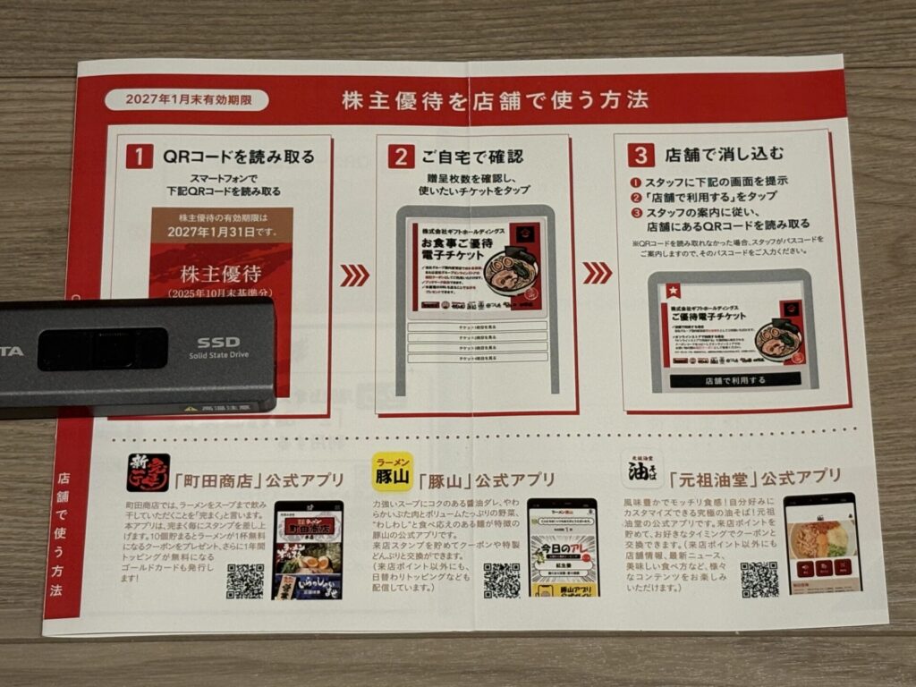 ギフトホールディングスは、株主優待で頂く電子チケットを利用して、町田商店のラーメンを楽しむために保有している銘柄です。